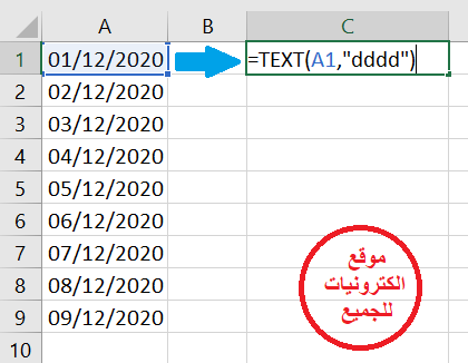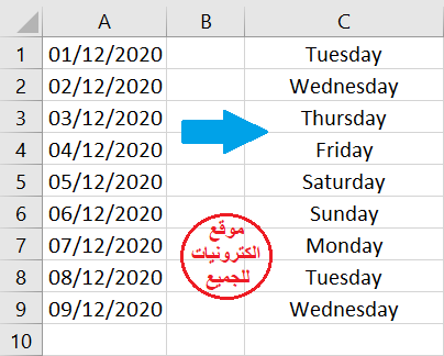 استخراج اسم اليوم من تاريخ معين بالاكسل Extract The Day Name From A Specified Date In Excel Youtube