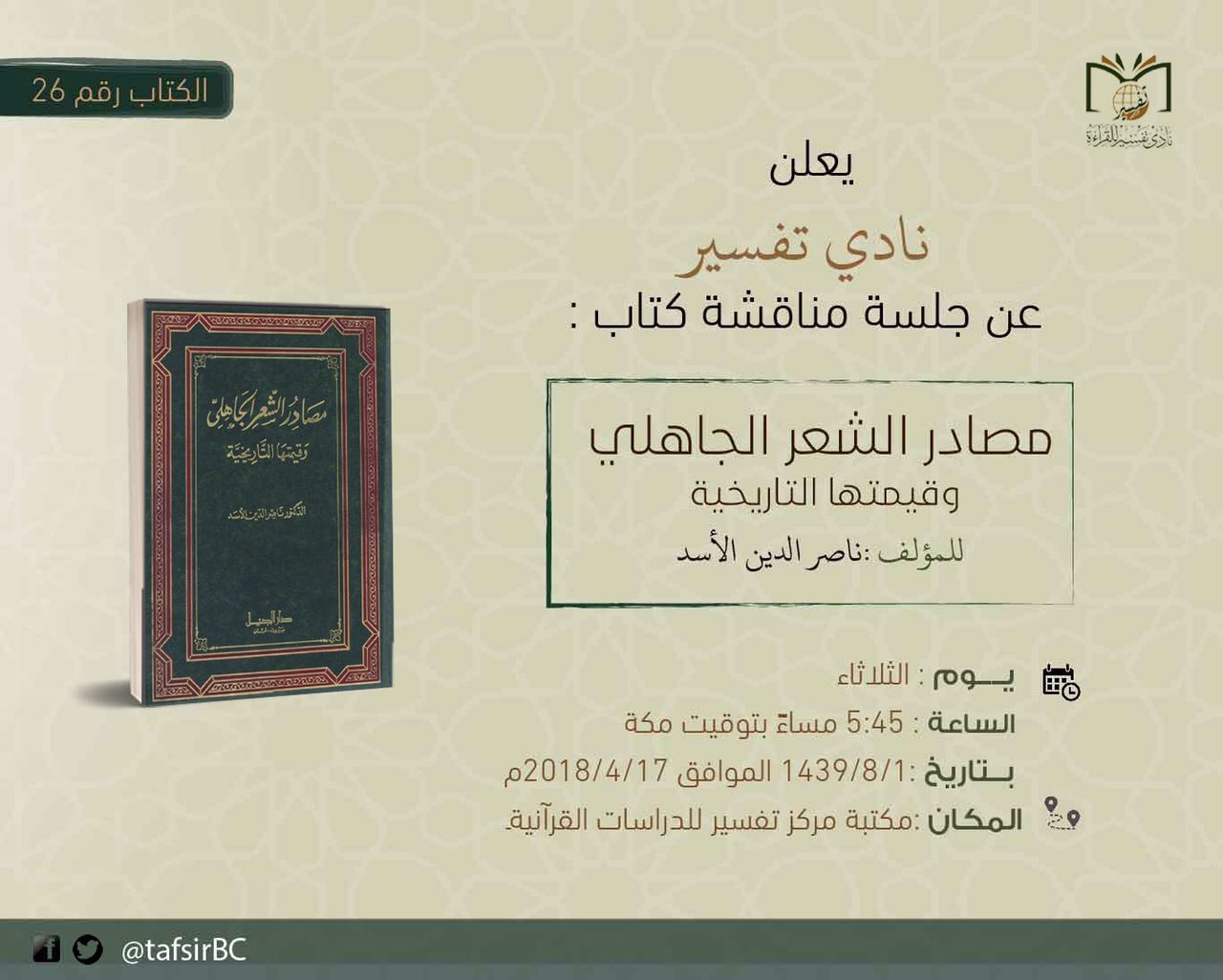 عبدالرحمن الشهري در توییتر لقاء أعضاء نادي تفسير للقراءة مغرب اليوم لمناقشة كتاب مصادر الشعر الجاهلي وقيمتها التاريخية كيف أصبح الشعر الجاهلي من أهم الوثائق في شرح غريب القرآن ما علاقة بيان