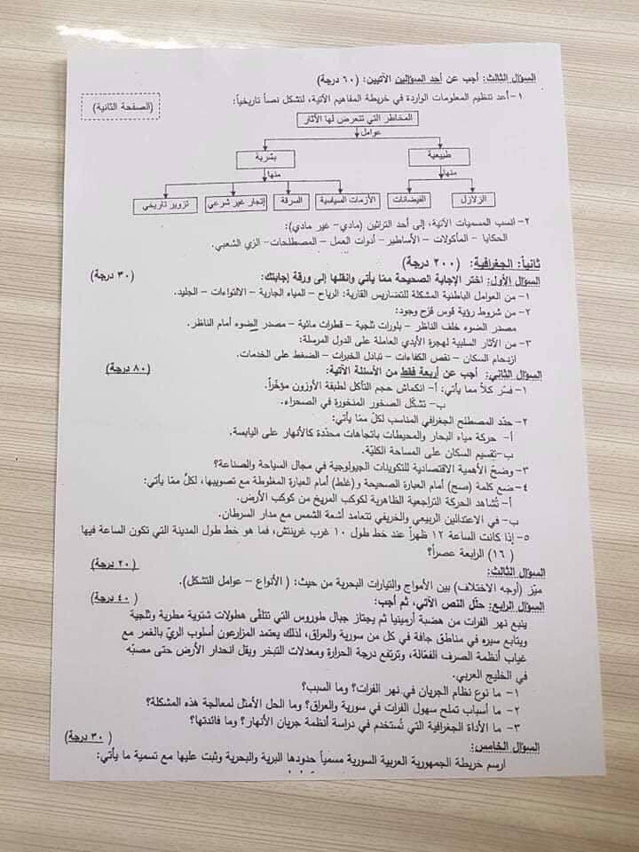 اسئلة امتحان الاجتماعيات للصف التاسع شهادة التعليم الأساسي دورة 2020 نظام حديث وقديم
