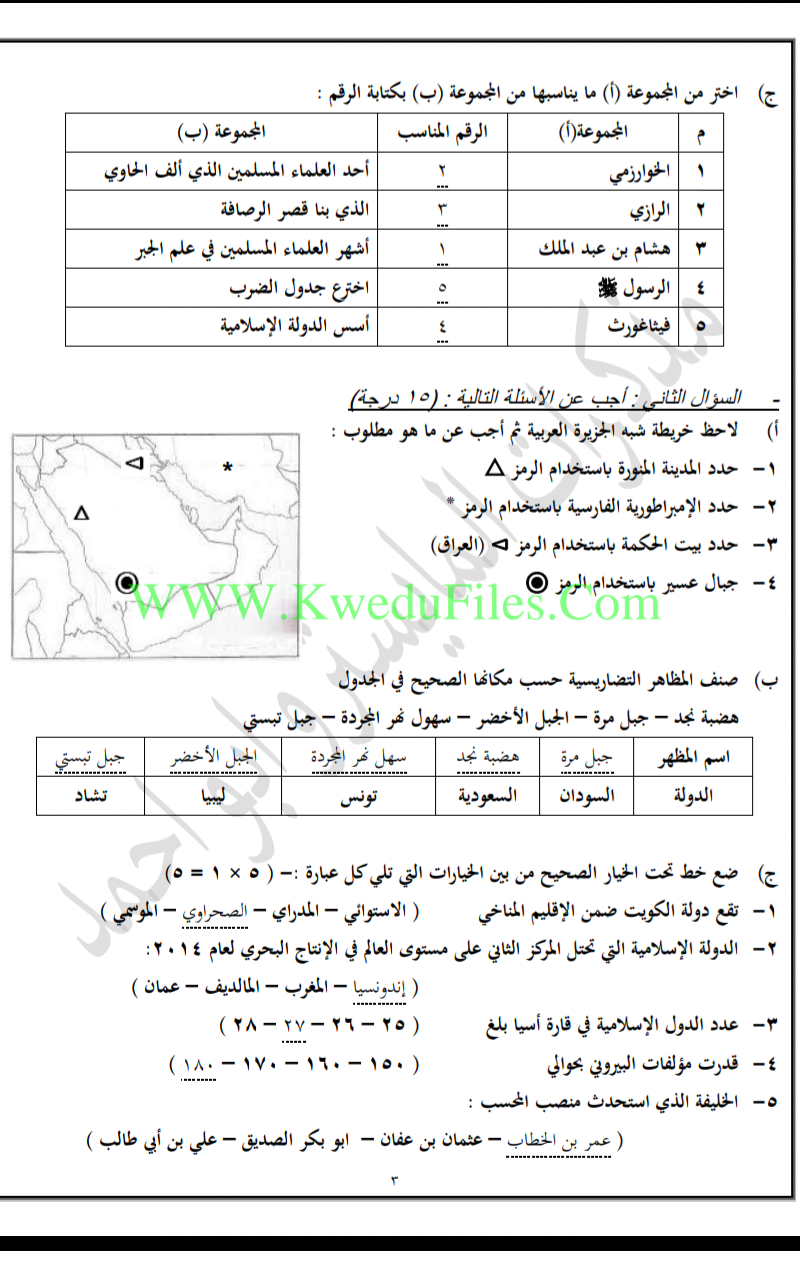 اختبار تجريبي في التاريخ للصف التاسع مدرسة امل الحياة الخاصة البيضاء Facebook