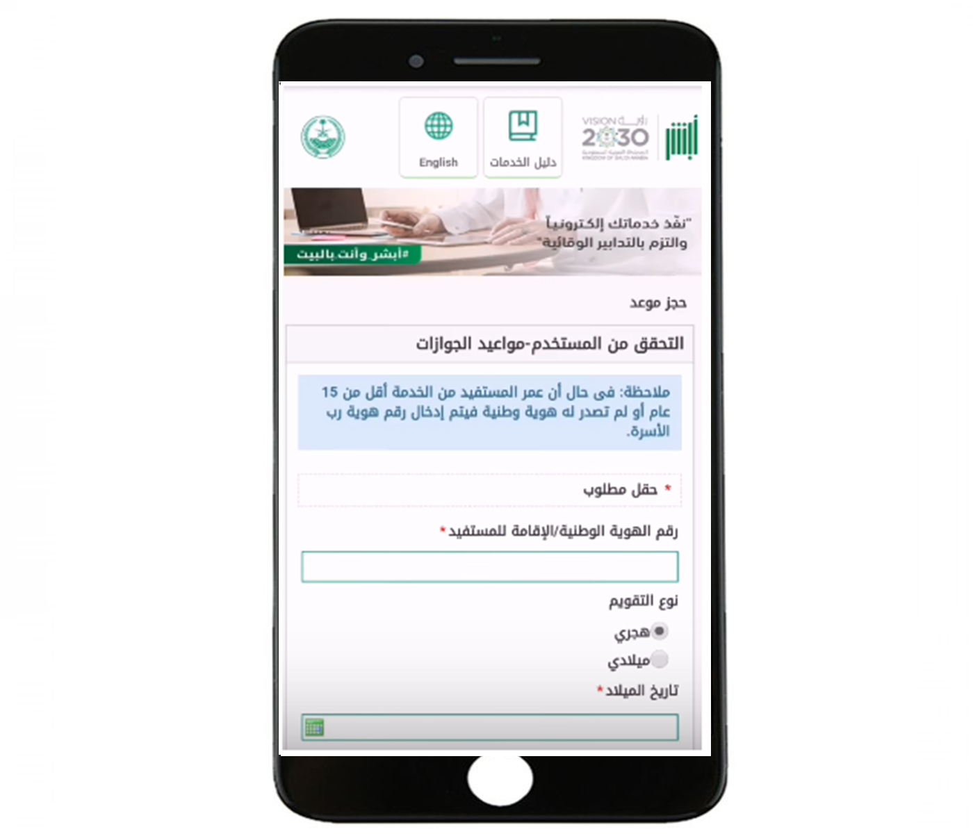 خطوات حجز موعد في الجوازات ابشر عن طريق الجوال دون امتلاك حساب