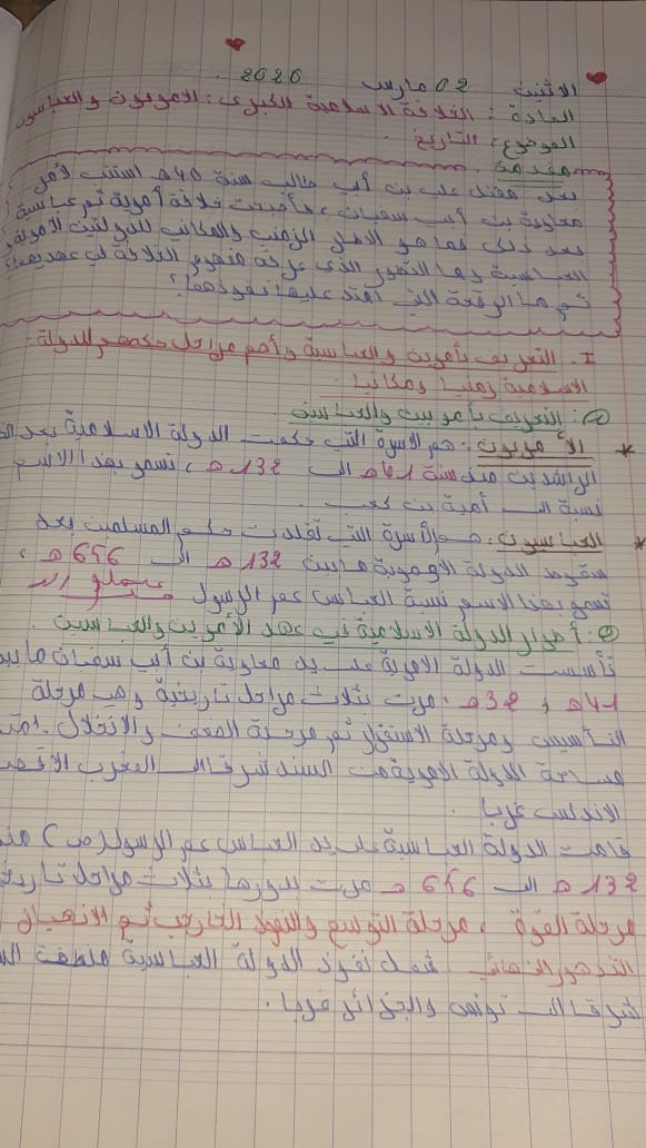 درس التاريخ الخلافة الإسلامية الكبرى الامويون و العباسيون الأولى إعدادي