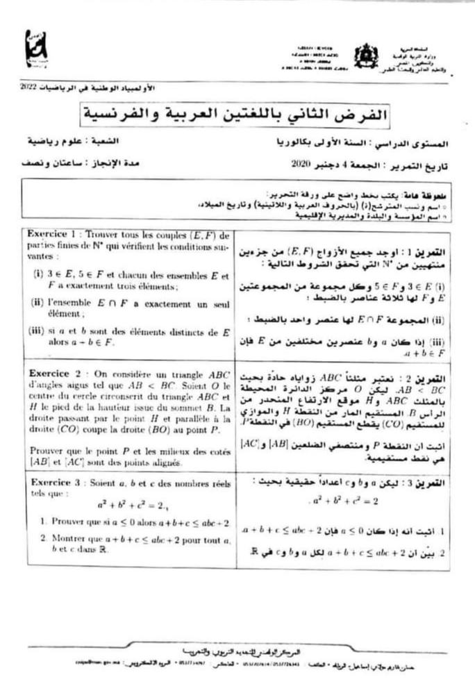 فرض اولمبياد مادة الرياضيات للسنة الثانية بكالوريا شعبة العلوم الرياضية