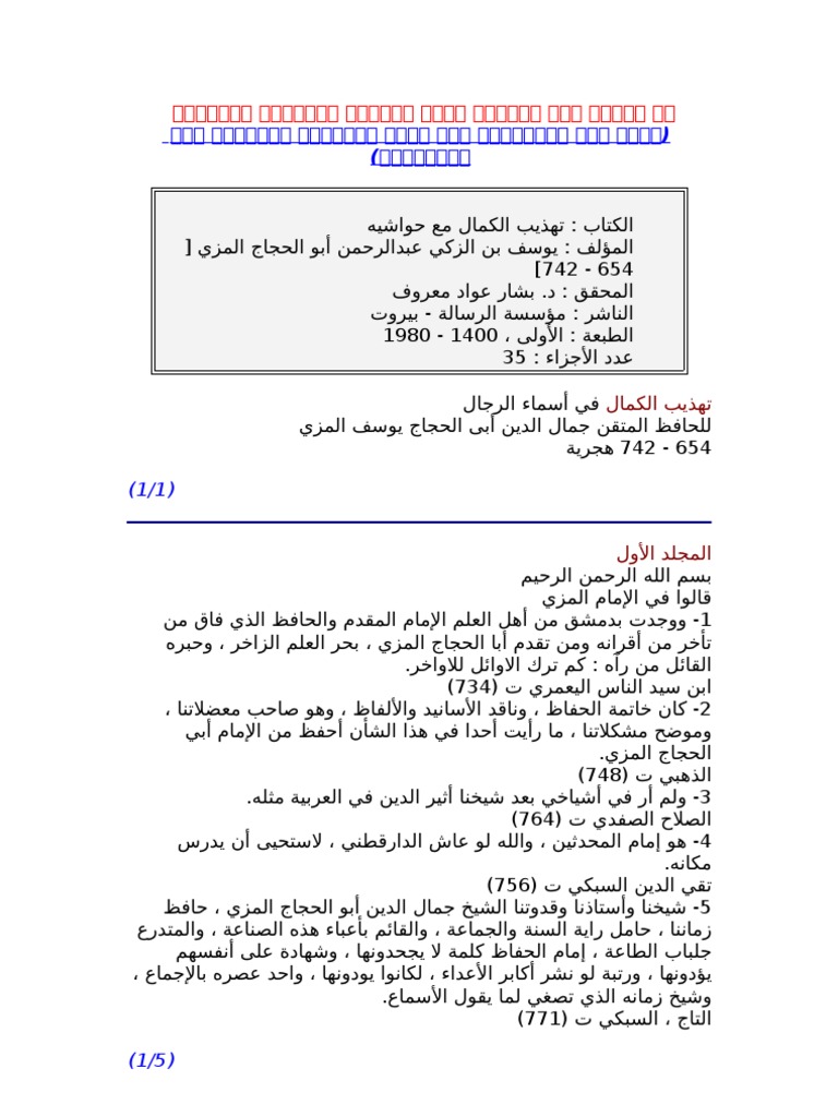 تهذيب الكمال في اسمآء الرجال الحافظ المزي 09
