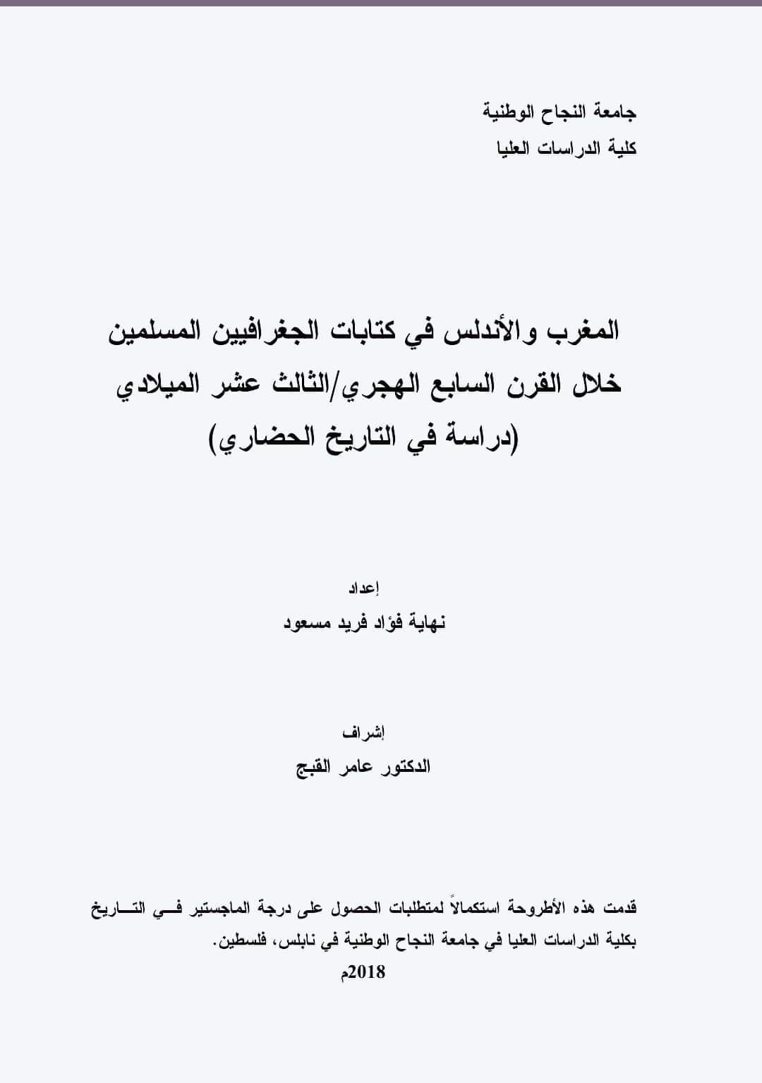 المغرب والأندلس في كتابات الجغرافيين المسلمين خلال القرن السابع الهجري الثالث عشر النيلادي دراسة في التاريخ الحضاري Pdf