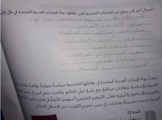 ورقة عمل درس التاريخ الحديث والمعاصر لدولة الامارات العربية المتحدة الصف السابع العلوم والتكنولوجيا