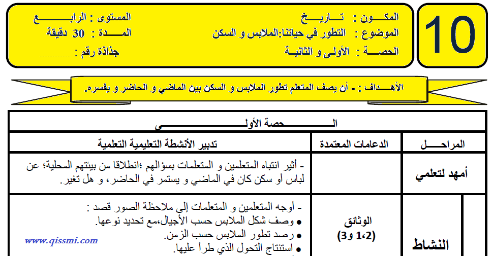 جذاذة التاريخ التطور في حياتنا الملابس و السكن للمستوى الرابع