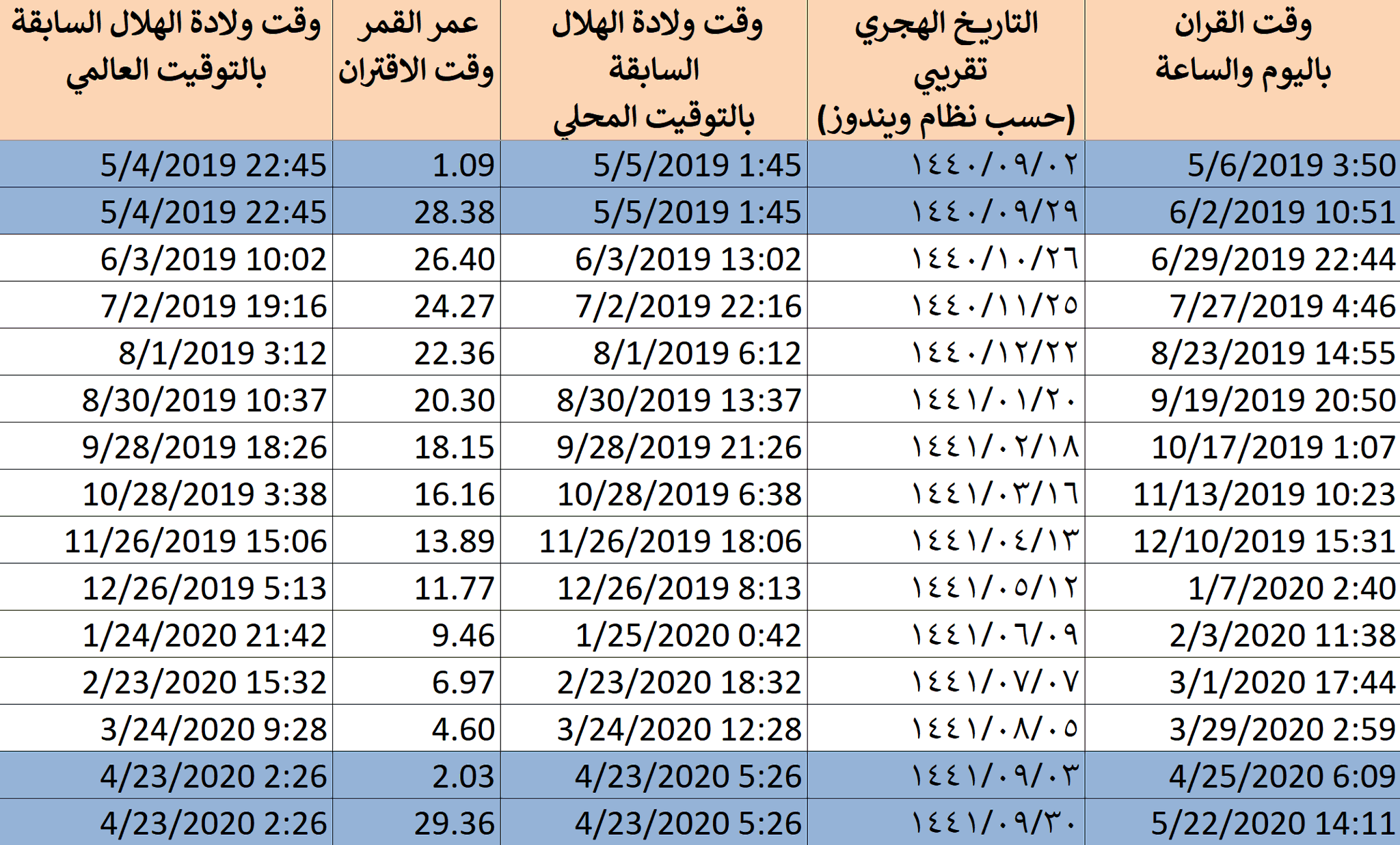 خالد العجاجي V Twitter مواعيد قران القمر والثريا من بداية الكنة السابقة حتى نهاية الكنة القادمة
