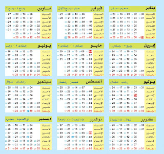 برنامج التقويم لتحويل التاريخ الميلادي الى الهجري للكمبيوتر