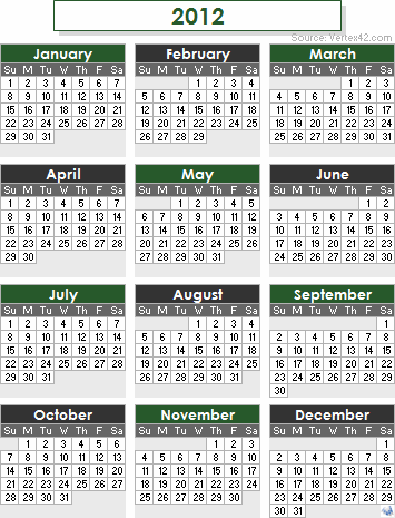 التاريخ الميلادي عام ٢٠١٢