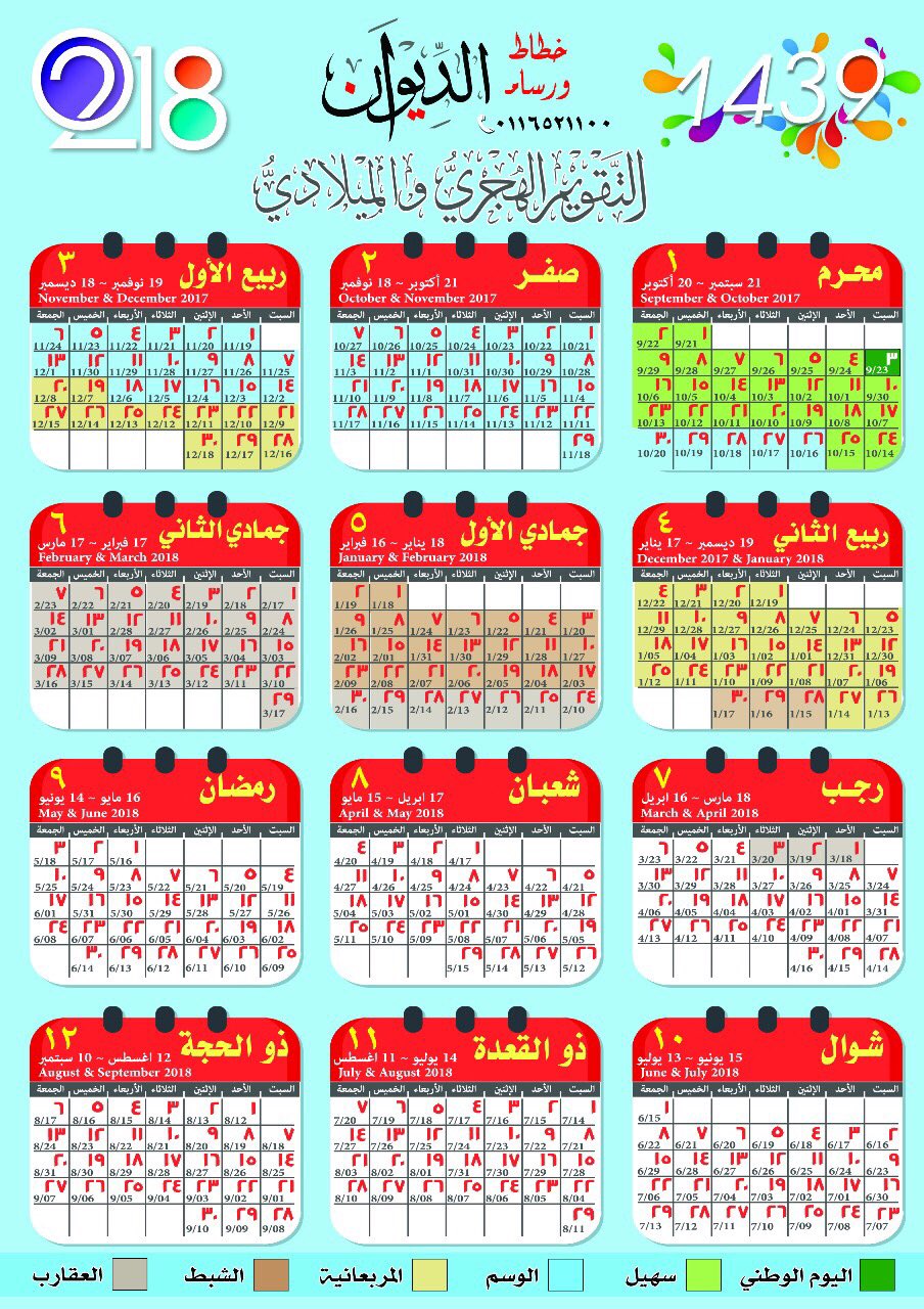 التقويم الهجري 1439 هـ و التقويم الميلادي 2018 م و بجودة عالية مجموعة التميز البريدية