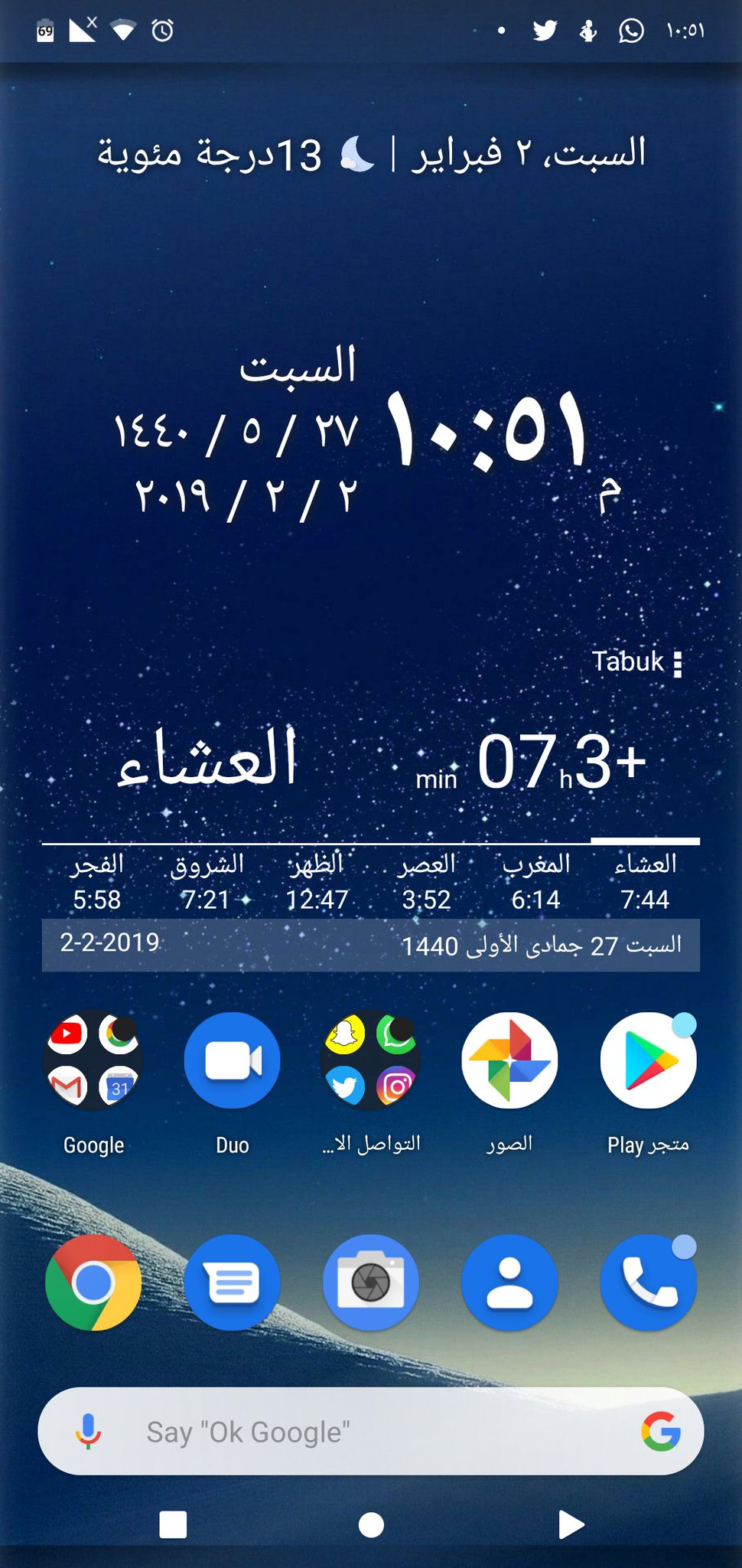 أبو إياد أندرويد Twitterissa برنامج لعرض التاريخ الهجري على شاشه جوالك للهواتف التي لاتدعم عرض التاريخ الهجري على الشاشه كاتطبيق مصغر بعد تثبيت التطبيق اضغط على اي مكان فارغ في خلفية