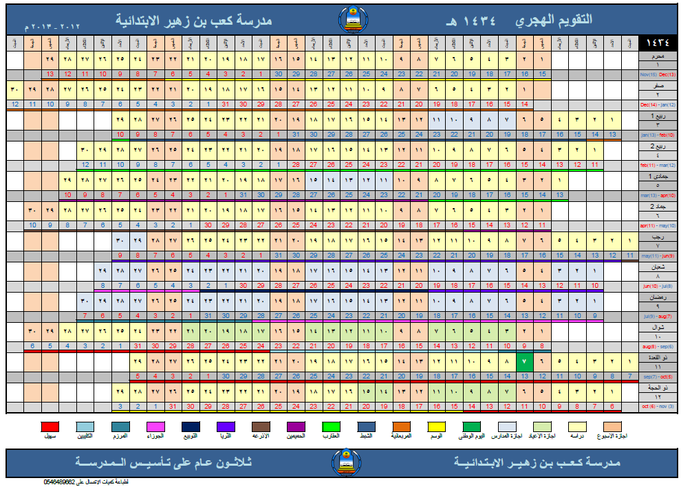 مدرسة كعب بن زهير الابتدائية التقويم الهجري لعام 1434