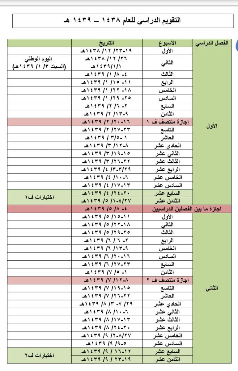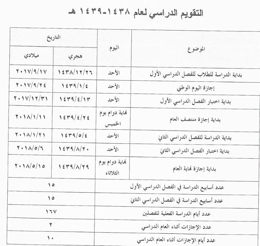 إجازات السعودية Auf Twitter التقويم الدراسي للعام الدراسي الجديد 1438 1439 هـ