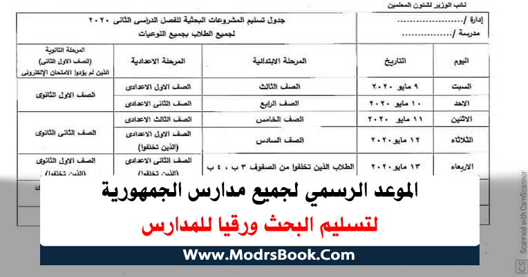 رسميا جدول مواعيد تسليم الأبحاث لجميع صفوف ابتدائي واعدادي لجميع المدارس