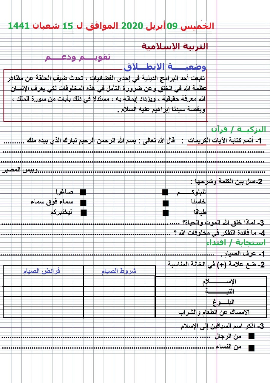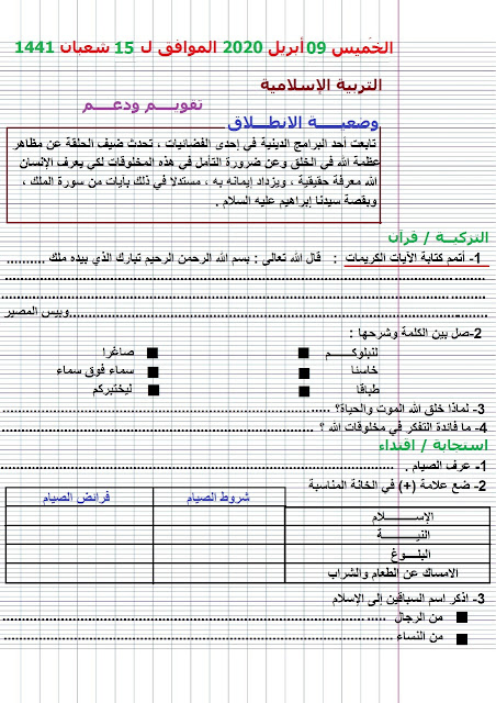 فرض و تقويم و دعم التربية الإسلامية المستوى السادس المرحلة الثالثة