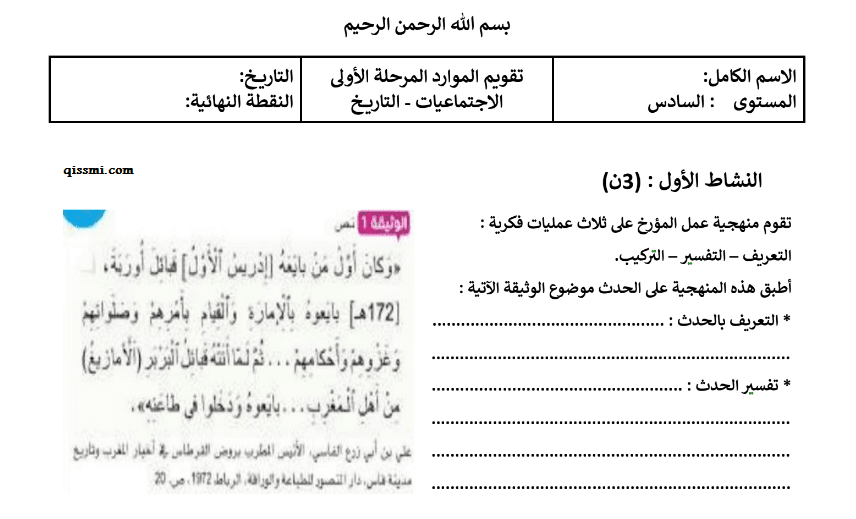 تحميل كتاب التاريخ والتربية الوطنية نشاظ المستوى السادس