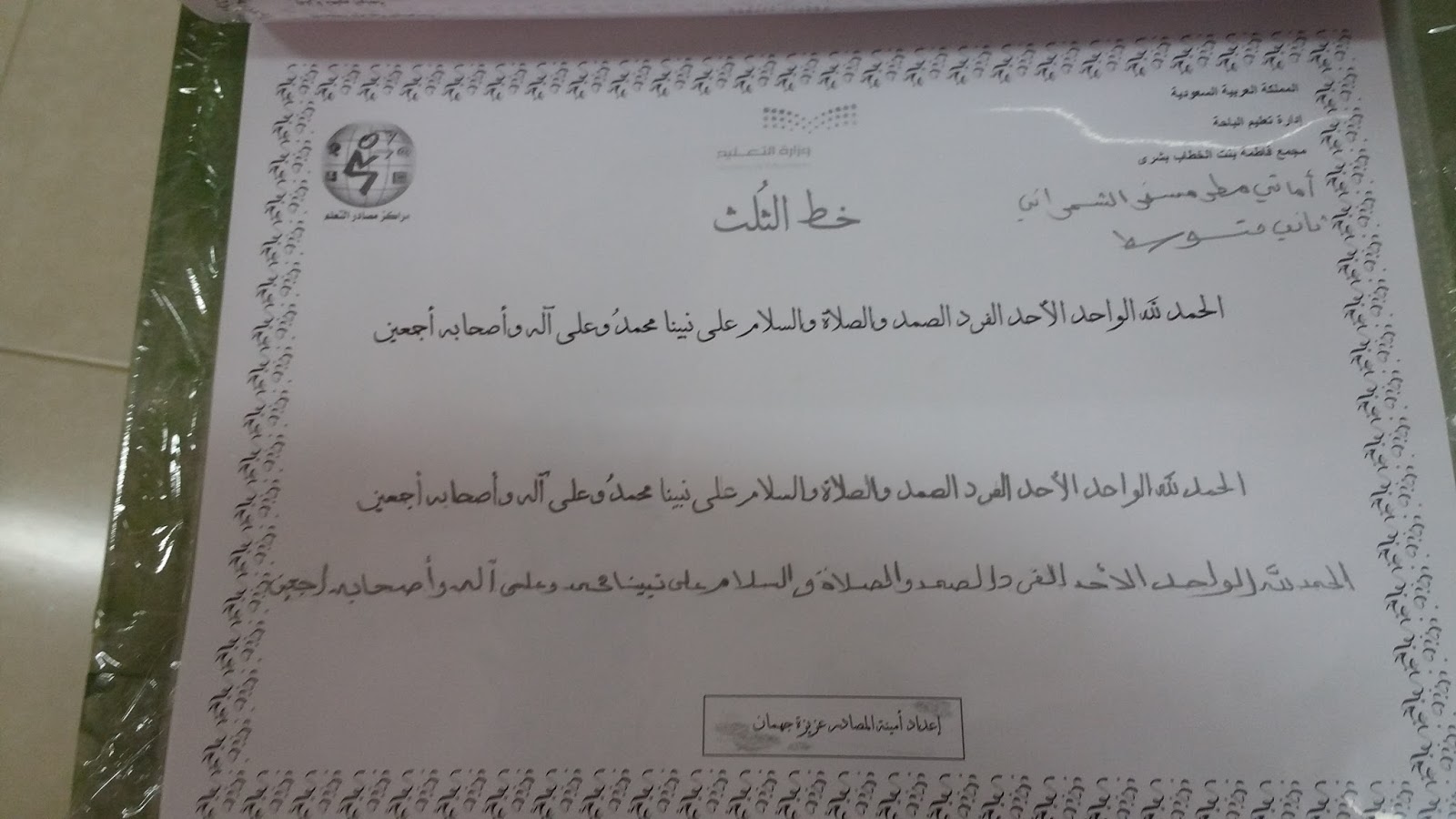 مركز مصادرتعلم فاطمة بنت الخطاب بشرى دورة الخط العربي للطالبات