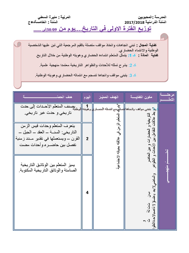 محفظة المعلم مخطط كامل لمادة التاريخ للسنة السادسة Facebook