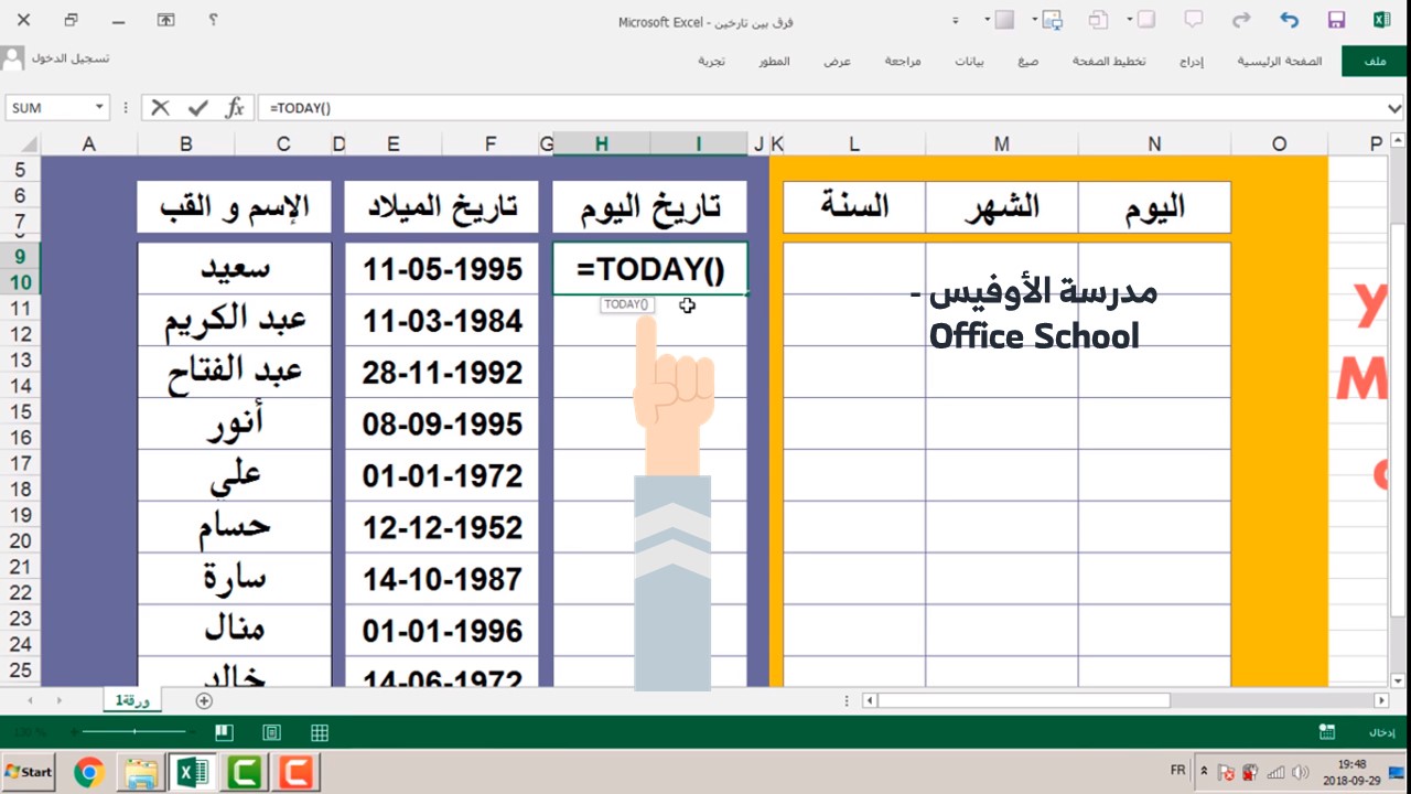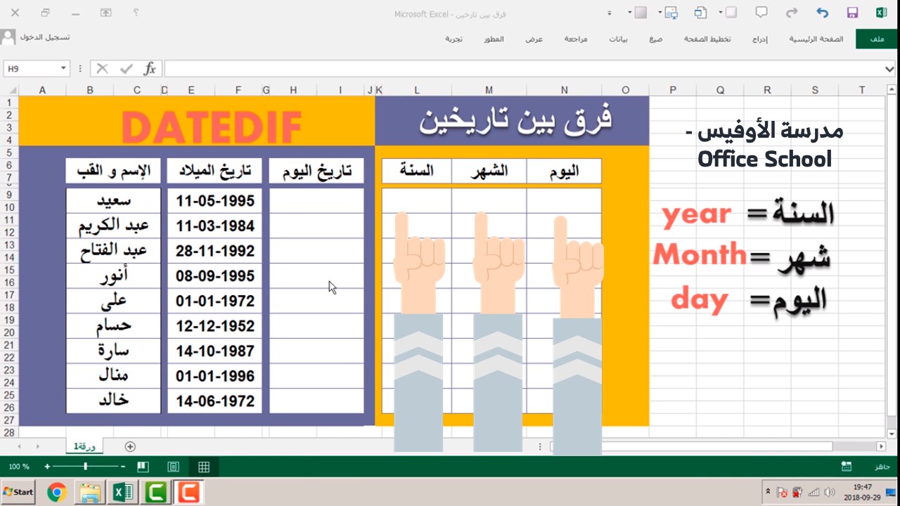 حساب الفرق بين تاريخين بالسنوات وبالأشهر وبالأيام عن طريق الإكسل Excel مدرسة الأوفيس Office School