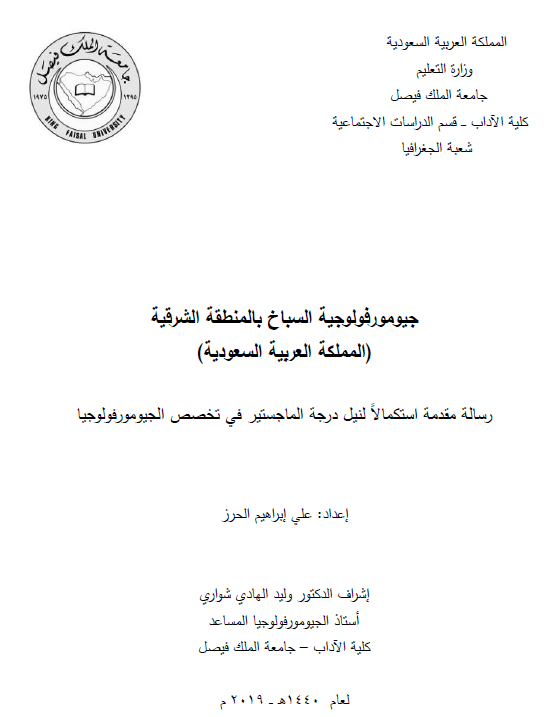 ماجستير جيومورفولوجية السباخ بالمنطقة الشرقية المملكة العربية السعودية Pdf