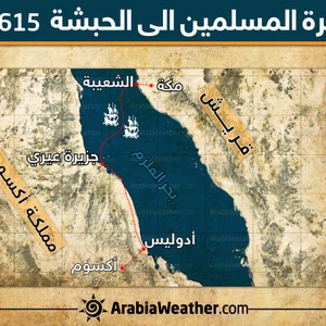 بالخارطة التوضيحية قص ة رائعة لهجرة الم سلمين إلى الحبشة وملكها العادل عام 615 ميلادي طقس العرب طقس العرب