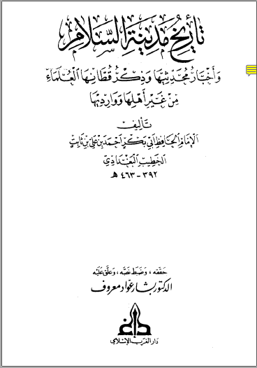 تاريخ بغداد أو مدينة الس لام ترتيب تاريخ بغداد