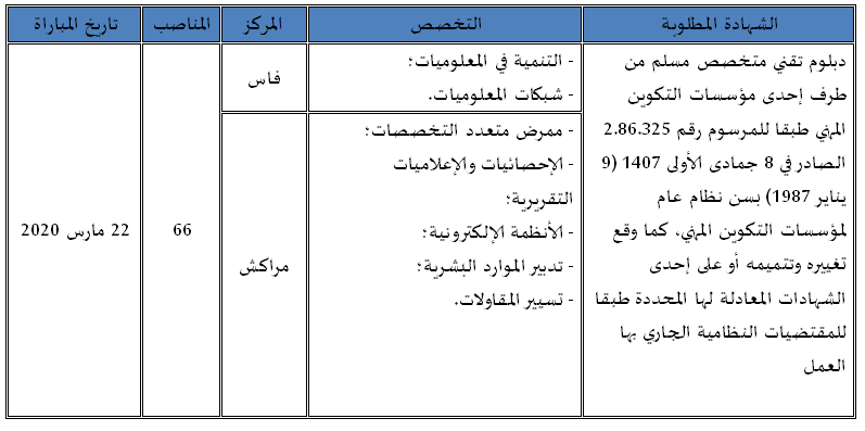 بدبلوم تقني متخصص المندوبية العامة لإدارة السجون وإعادة الإدماج مباراة توظيف 66 ضابط مربي ممتاز ذكور آخر أجل هو 11 مارس 2020