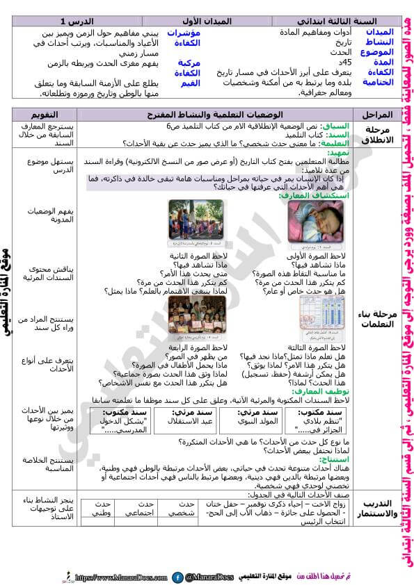 مذكرات السنة الثالثة 3 ابتدائي في التاريخ المقطع الاول درس الحدث وورد Word