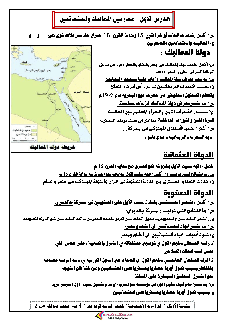 الدرس الأول تاريخ للصف التالت الاعدادى مصر بين المماليك والعثمانيين ج1 Youtube