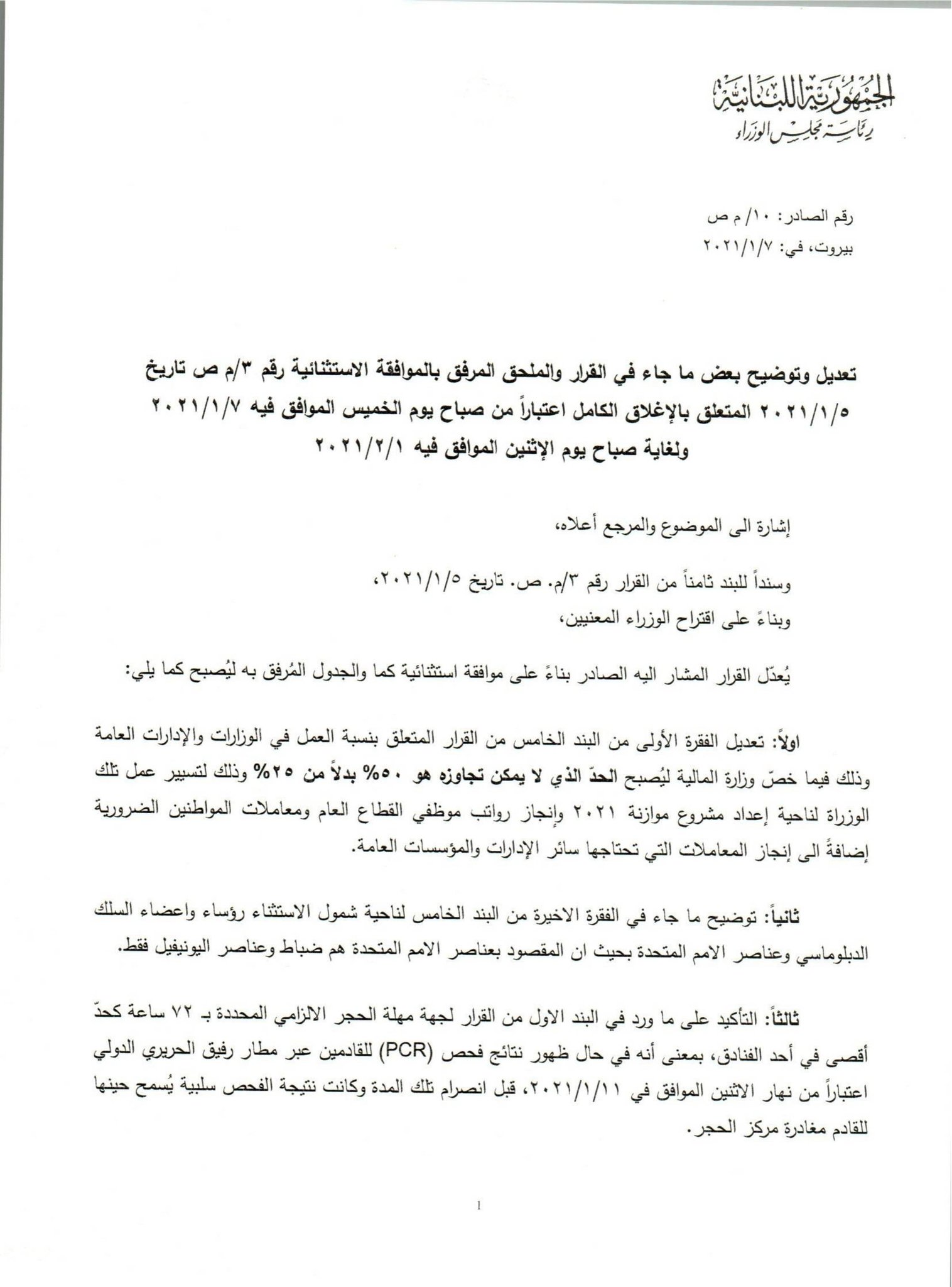 رئاسة مجلس الوزراء On Twitter تعديل وتوضيح بعض ما جاء في القرار والملحق المرفق بالموافقة الاستثنائية رقم ٣ م تاريخ ٢٠٢١ ١ ٥ المتعلق بالاغلاق الكامل اعتبارا من ٢٠٢١ ١ ٧ ولغاية ٢٠٢١ ٢ ١ مجلس الوزراء حسان دياب كورونا لبنان